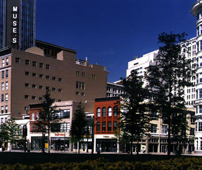 Winter Construction restored the Muse’s Block buildings, integrating retail space (approximately 26,000 square feet) and loft apartments.